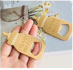 Made of metal alloy, every baby poppin bottle opener is well made, durable and unique.It must be with these beautiful twisted baby bottle to celebrate the eternal love you share.
