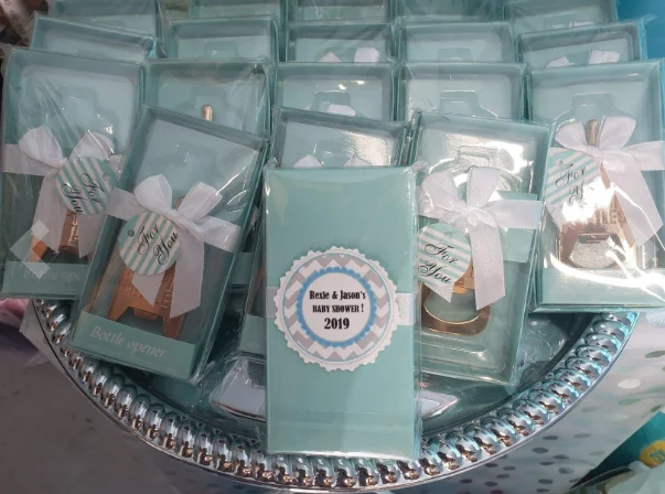 Cute baby bottle shape is a topical element,baby shower boxes for decoration is great for boys.Bottle opener will surely surprise your friends and guests,everyone will like them very much.