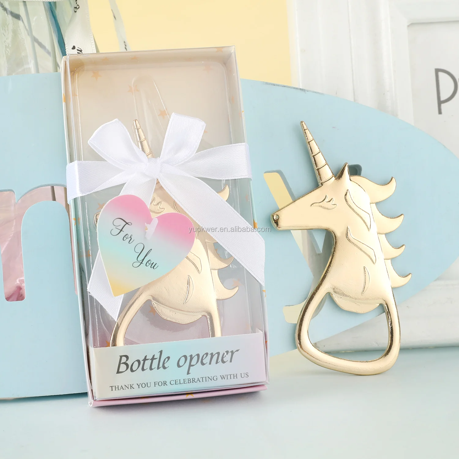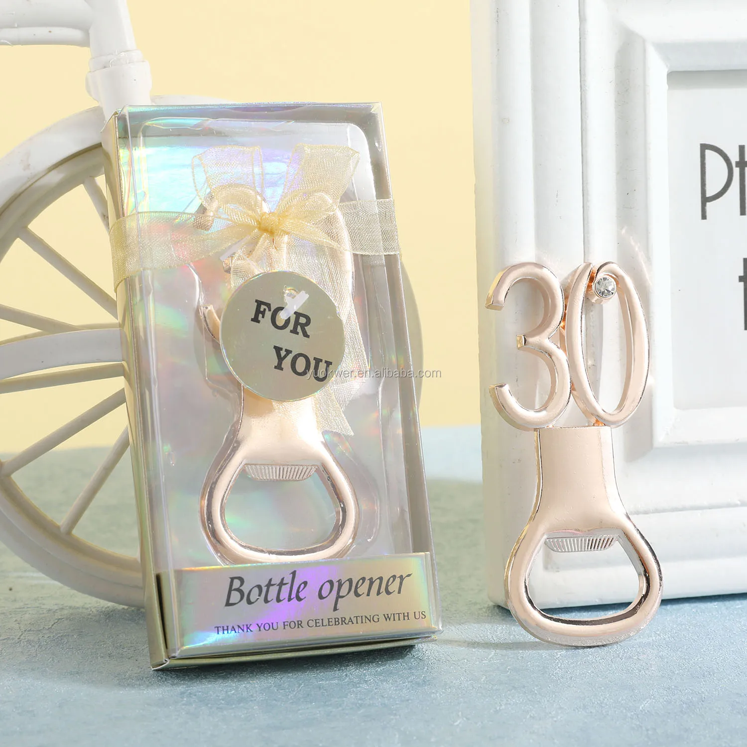 Beautiful metal poppin bottle opener favor. Each bottle opener favor with gift box,this unique gift souvenir will definitely surprise your friends and guests.