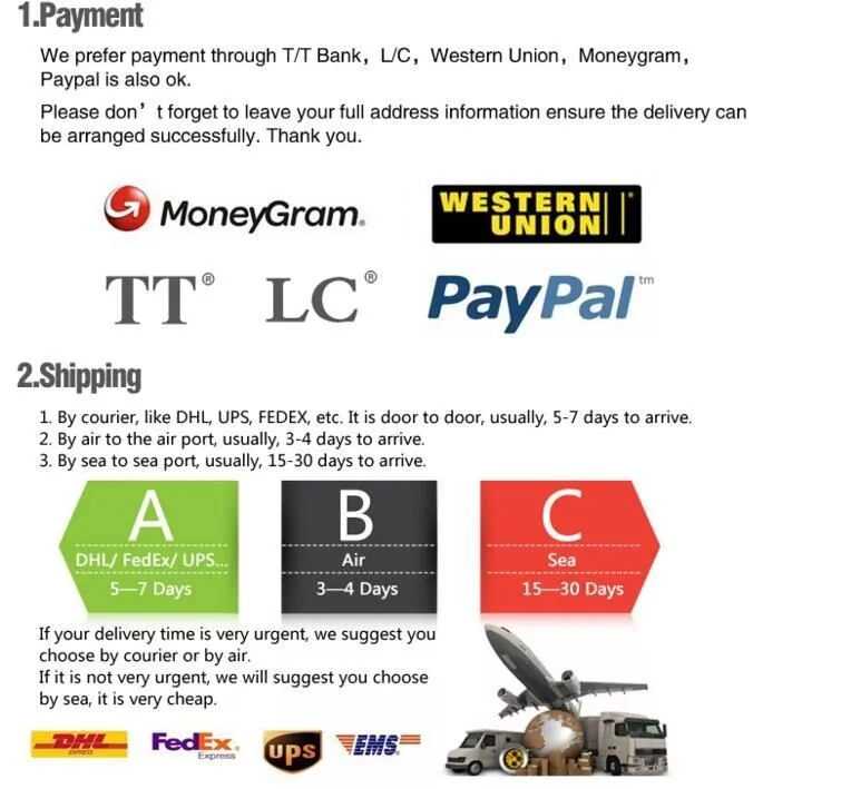 14. Delivery Delivery by sea or air according customer’s requirement