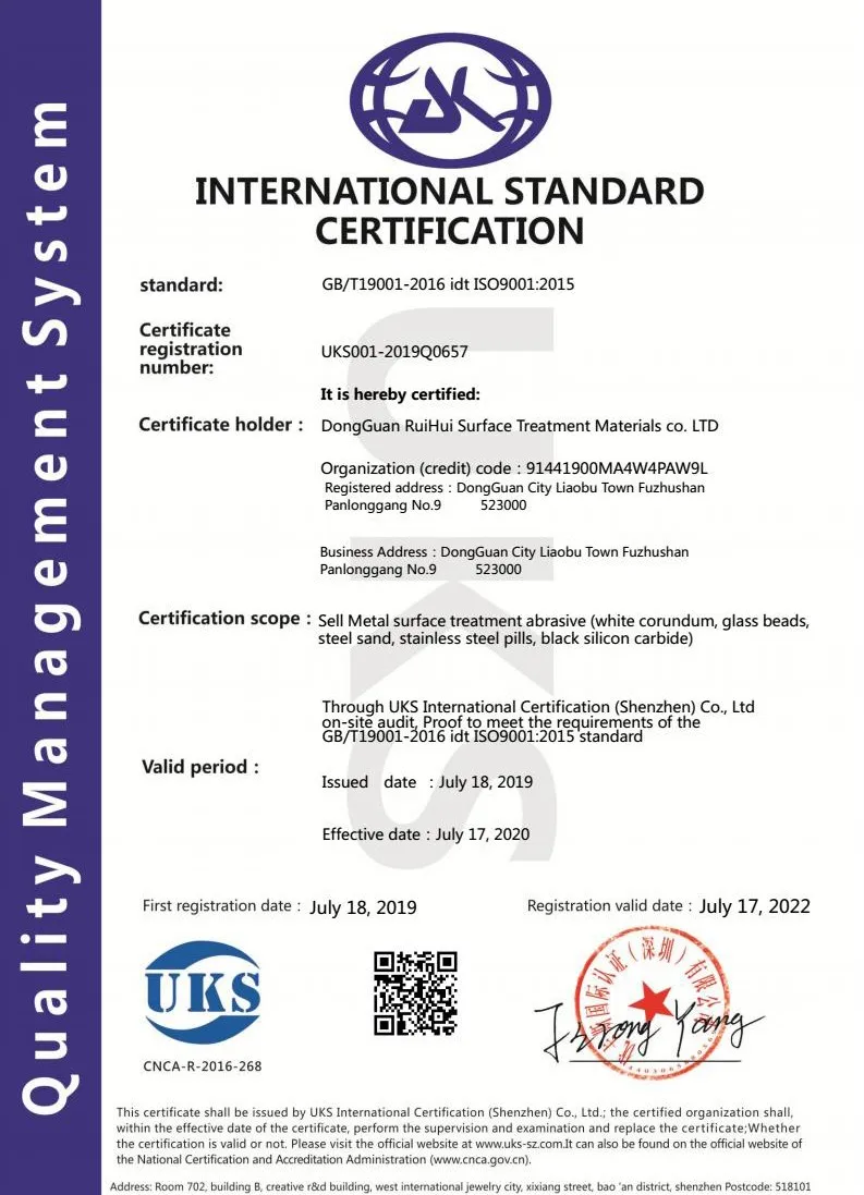 Passed the ISO9001:2015 quality system authentication and SGS authentication.