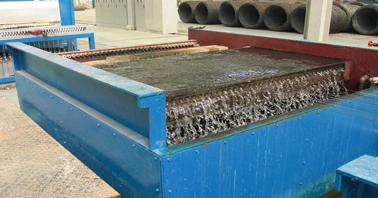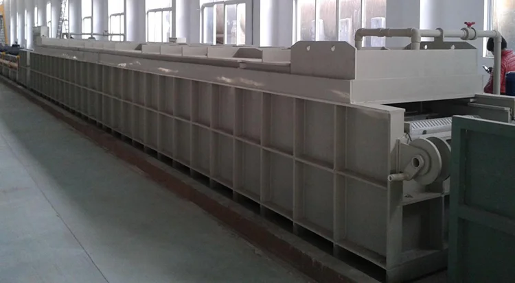 The steel wire should be cleaned quickly to meet the requirement of hot-dip galvanizing speed. The pickling system can ensure the reliable pickling efficiency, so that the steel wire can reach the clean surface before plating under the scouring of hydrochloric acid.The electrolytic pickling tank is made of high strength PP material.Acid concentration can be controlled according to process requirements.Dimensions of tank: 12000×800×1200 (mm) effective pickling length: 9000mm