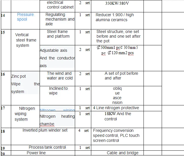 (1) zinc pot: it adopts XG08 steel plate zinc pot with external gas heating structure. The zinc pot with heating system is installed on the top end of the zinc pot and opposite sides of the pot. The temperature of zinc liquid in the working area of the zinc pot is even