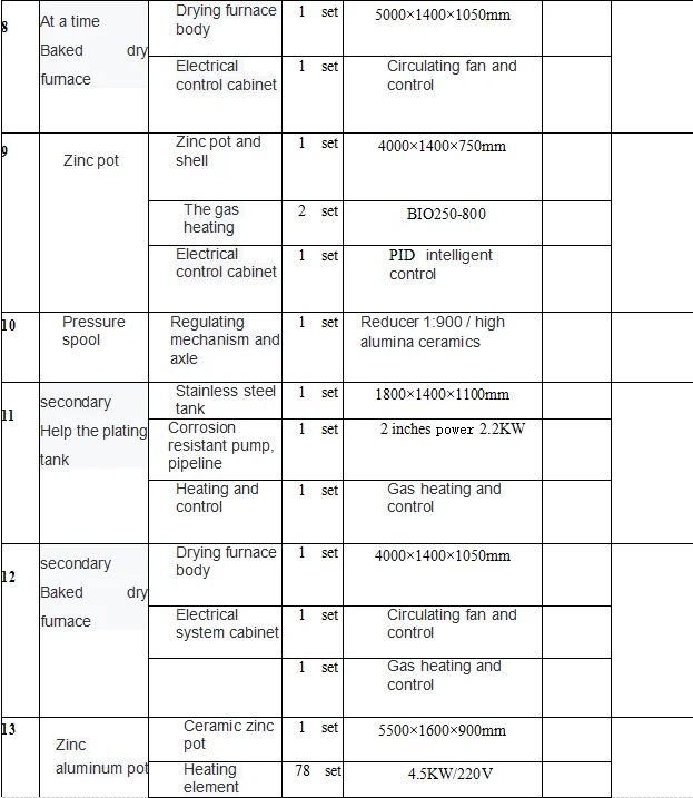 (4) zinc pot melting amount: 10 tons;