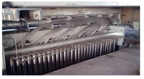 16. Steel wire vertical steel frame and threading platform: steel structure portal type vertical frame and threading platform are adopted. The steel frame is provided with supporting spool, conducting shaft and steel wire guide shaft to ensure the stable operation of steel wire.