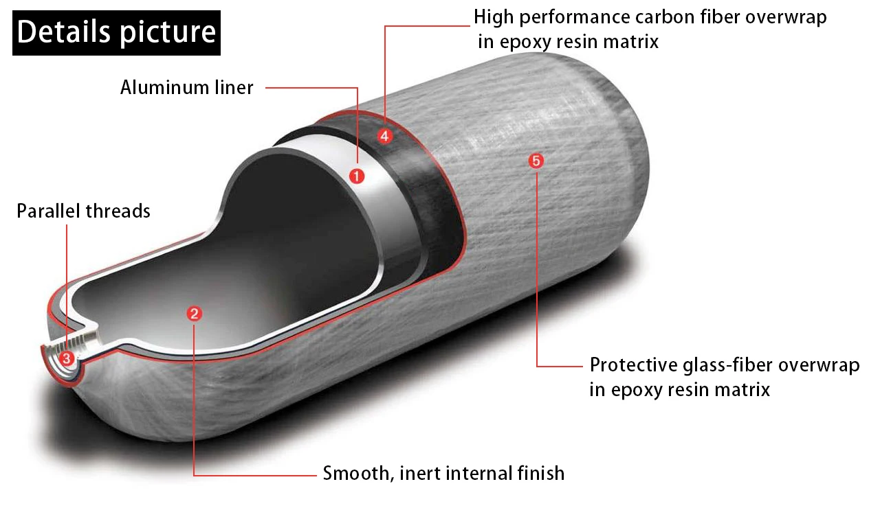 Carbon Fiber Composite Cylinder lined with Aluminium Alloy | ||||||||||||||