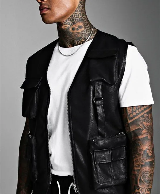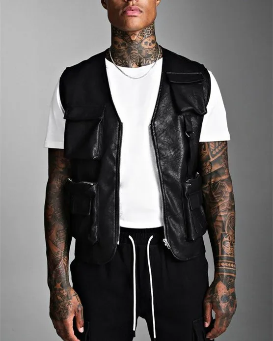 Custom Men's Utility Vests High Quality Fashion Wholesale Multi pocket Tactical Leather Motorcycle Vest for Man