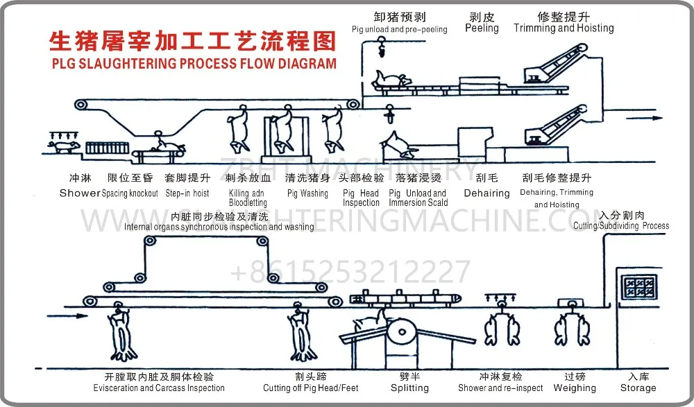 Include | 1. Pre-peeling and skinremoval 2. Brisket cutting 3. Viscera and Offal removal 4. Splitting 5. Carcass washing and trimming. | |||||