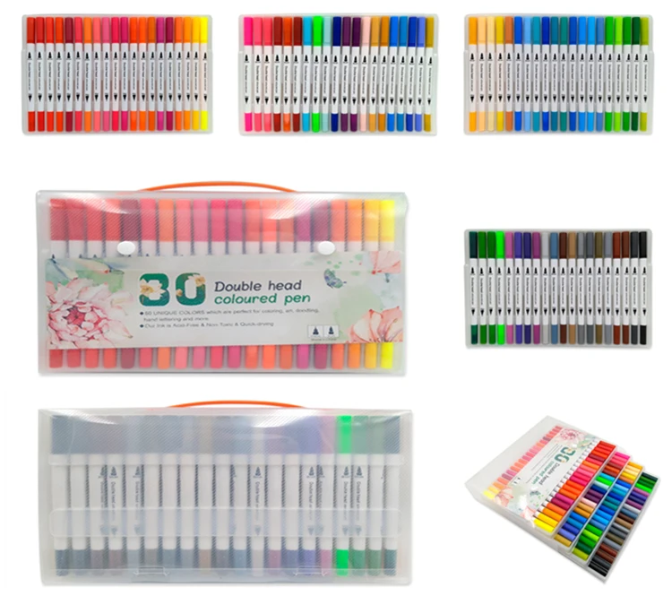 80pack amazon hot professional art markers nylon tip dual water color brush fineliner pen for drawing