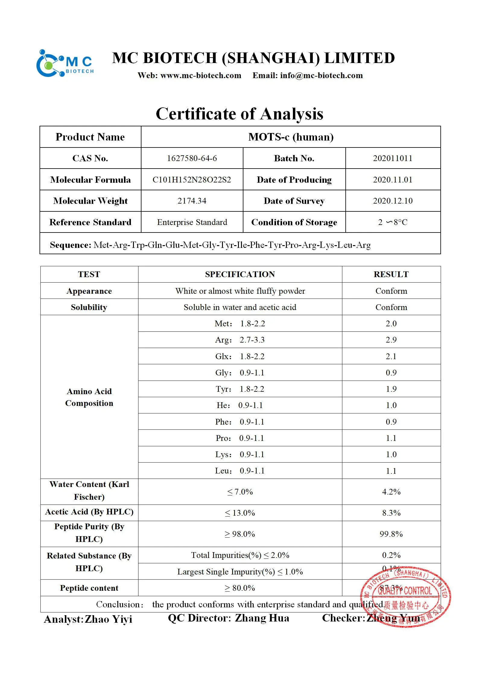 MOTS-c is a mitochondrial-encoded peptide with 16-aa’s encoded within the 12S rRNA locus of mtDNA in human cells. MOTS-c can translocate into the nucleus in response to metabolic stress and regulation of adaptive nuclear gene expression. This allows the peptide to promote resistance of metabolic stress by upregulating the
