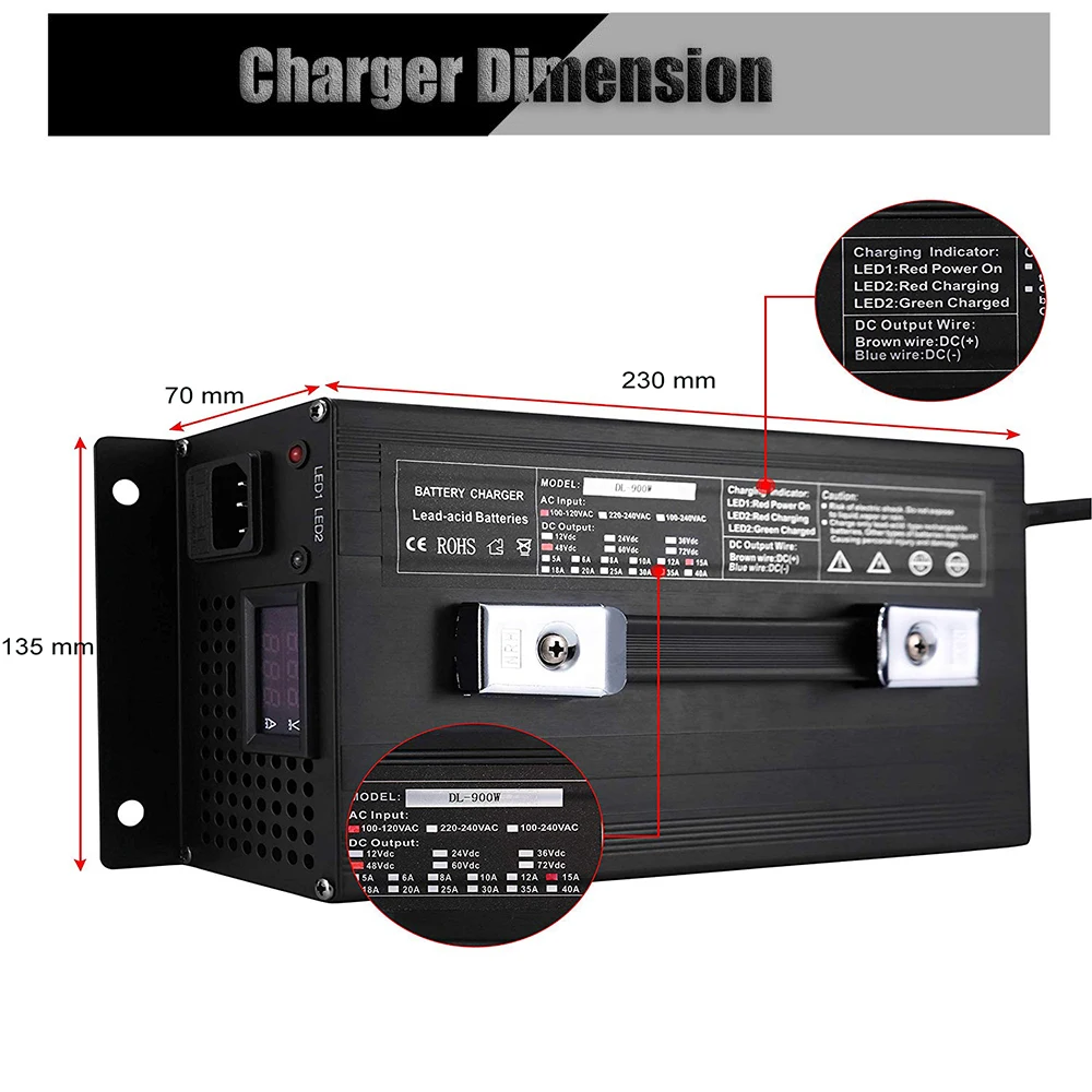 Transition for Lead acid charger is 25% of CC.(charging time:6-8 hours) | |||