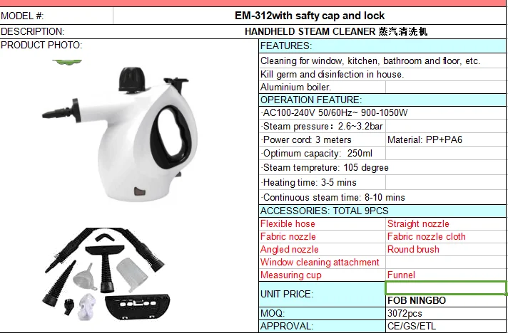 clothes hot sell portable steam cleaner /Home appliances mini handheld cleaning machine Product Description