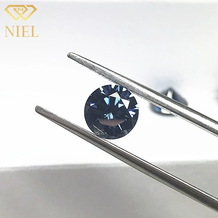 Round cut synthetic diamond champagne blue precio pedras moissanite