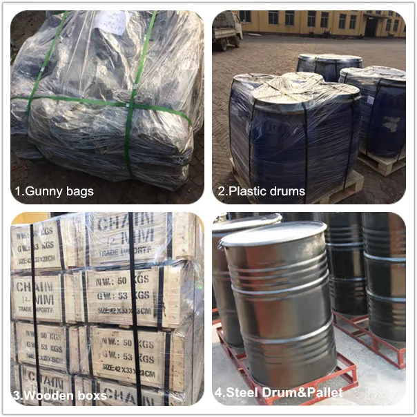We usually packed in steel drums then pallet. It also can be packed with wooden box or plastic drums or gunny bags, etc.And it also can be customized.