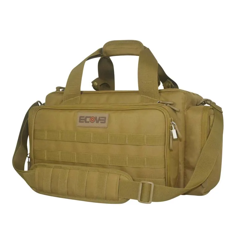 Feature Description | - Belt Holder- Tactical Shoulder Strap- Tactical Shoulder Strap- Slide-Away opening on main compartment- Lockable main compartment with removable dividers, 15.5” x 8”x 10”- Lockable front pocket with 3 mag holders, foldable cleaning mat, 14”x 8.5”x 1.5”- 2 Lockable side pockets, 8”x 7.5”x 2.25”each- Lockable Hide-Away Pistol Pocket with BrushTricot liner, 14”x 8.5”x 2”- Mesh pocket on back, 15.5” x 8”- Molle System for any accessories, pouches, hooks | |