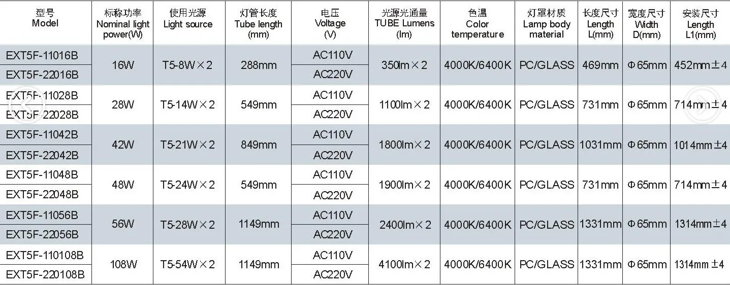 Function and Feature: 1. Tri-proof fluorescent lamp have several features, which are save energy, safety, wide illumination, high brightness and stable. 2. The lamp size is smaller, it uses double T5 light tube with tri-phosphor powder, it can make the life time longer. High color endering index and higher luminous flux. 3. We use the screw to tight the lamp lid, to provide excellent water-proof and dust proof function. The lamp lid already provide the setting point, the diameter of lamp cover is only 63mm, very convenient to use.The ballast set under the tube to reduce the lamp length. 4. Consumer can choose different kind of waterproof connector. Application: Machine cabinet, electric cabinet, control room, etc