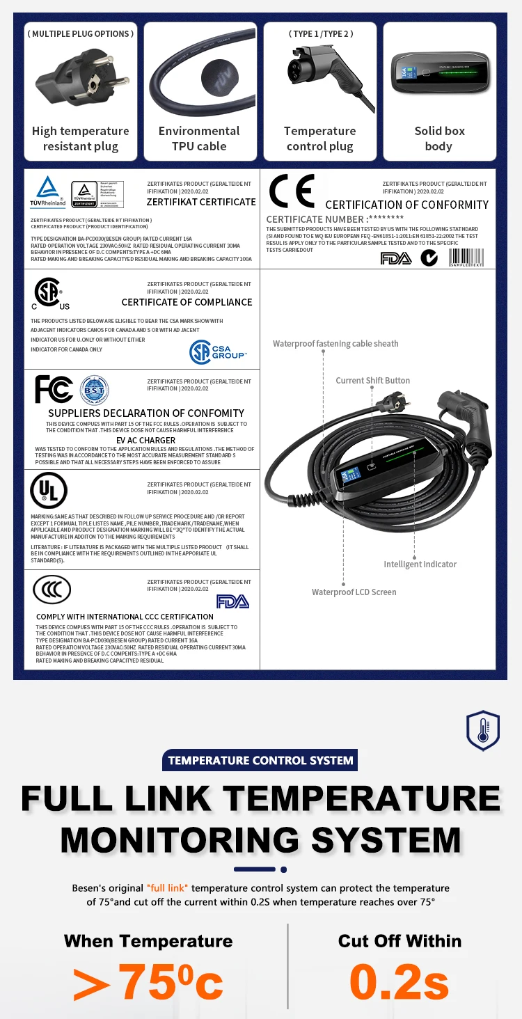 BESEN is a manufacturer specializing in EV charging products. Apart from the factory, our company has other departments of design,R&D and customer service. Our main products include EV charging station, EV cables and EV connectors. To better fit different market preferences and needs, we offer not only standard products but also customized ones upon requests.We are devoted to update products, complete project solutions and after-sales service to ensure top ranks of our customer satisfaction in the market. We are committed to become the most professional EV charging equipment manufacturer in China and keep striving for it.
