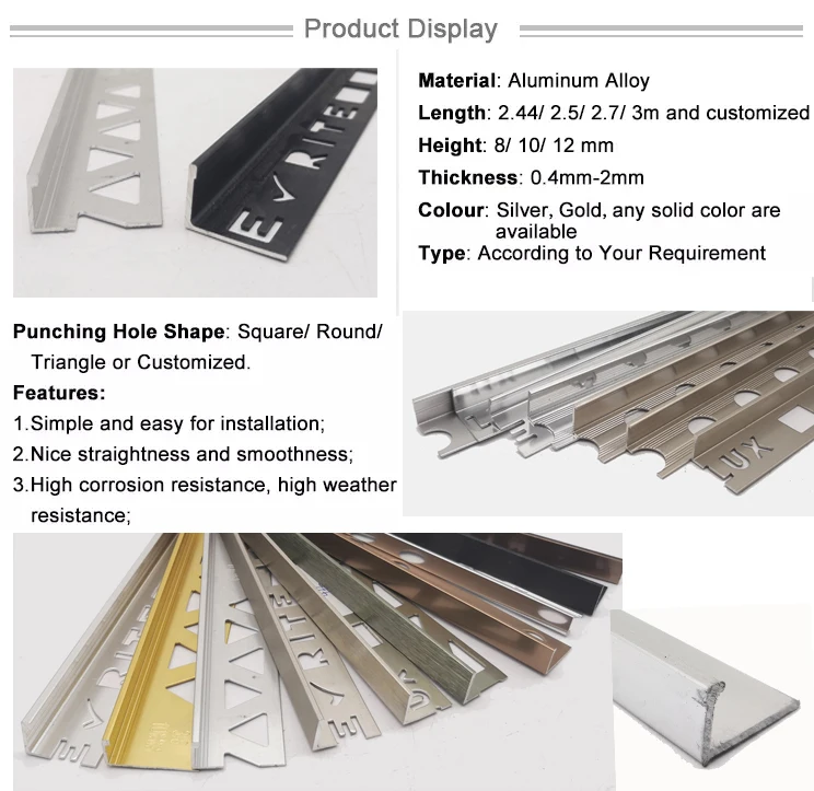Application | For protecting & decorating the edges of ceramic tiles, bathroom, kitchen, living room, house, hotel, wall, KTV, hospital, office building etc. | ||||||
