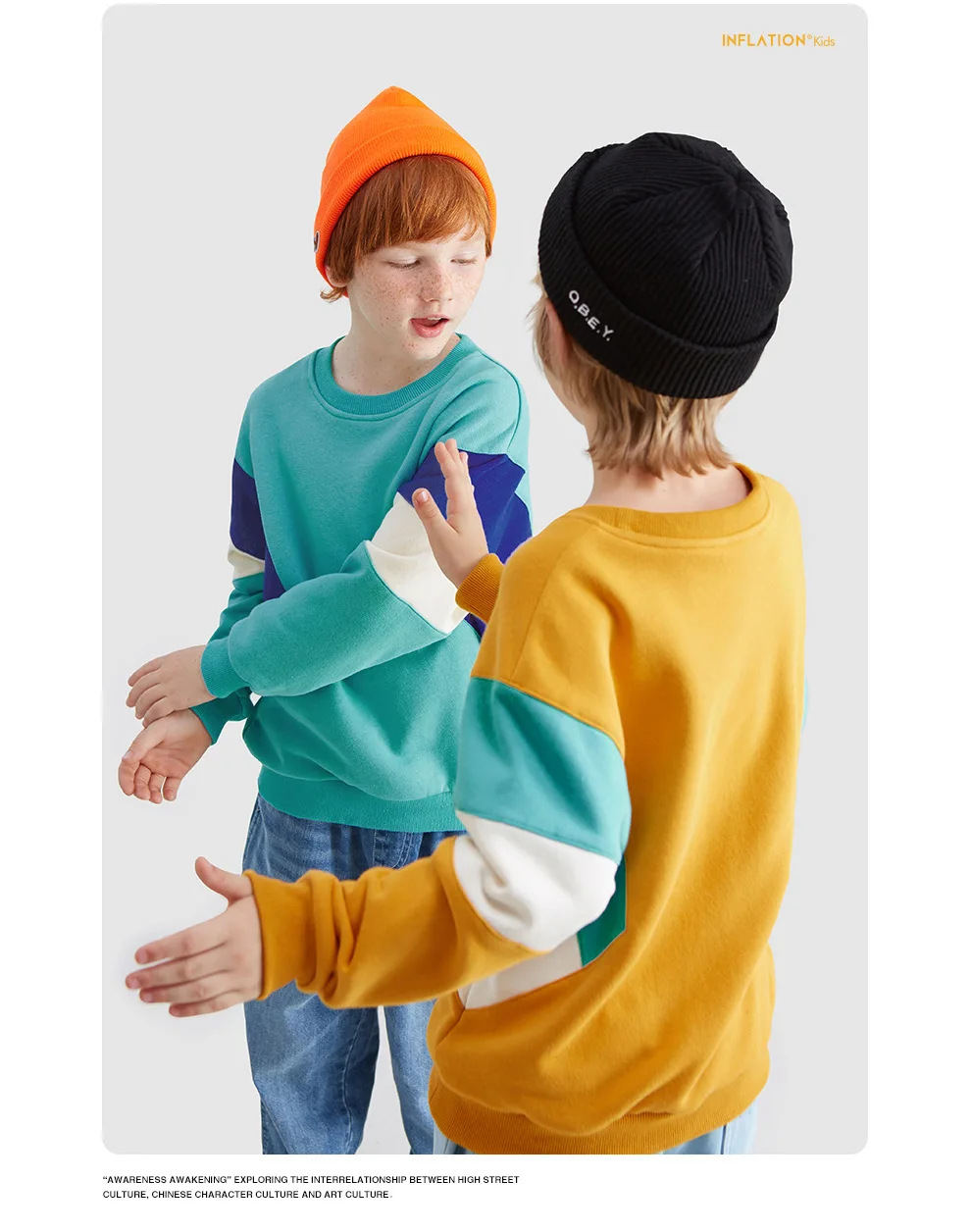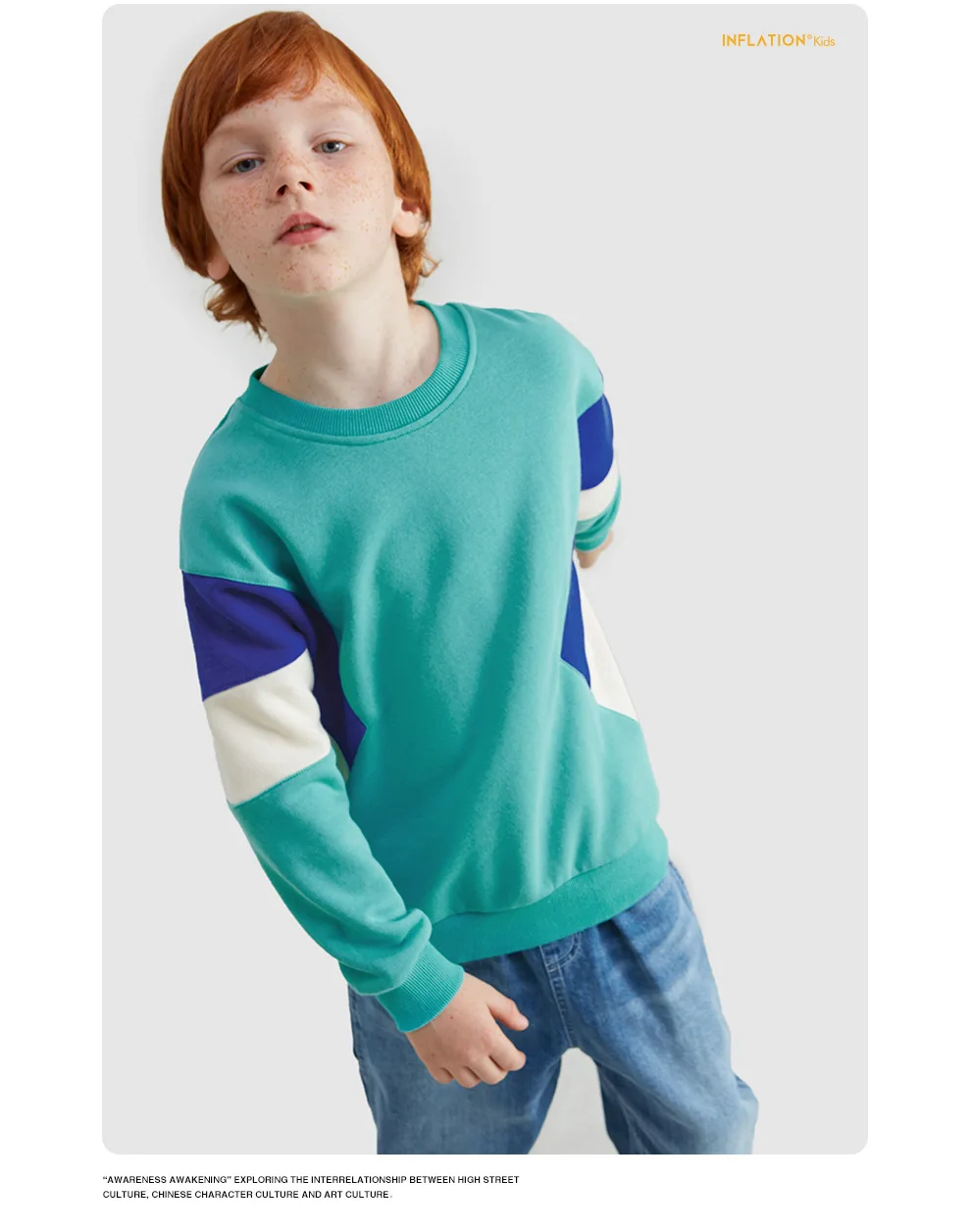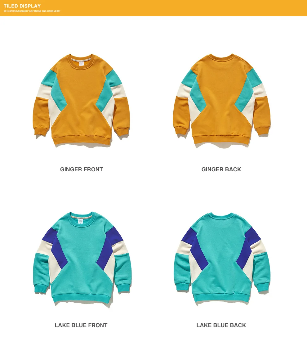 High Quality Super Soft three color matching loose shoulder round neck boy Sweatshirt
