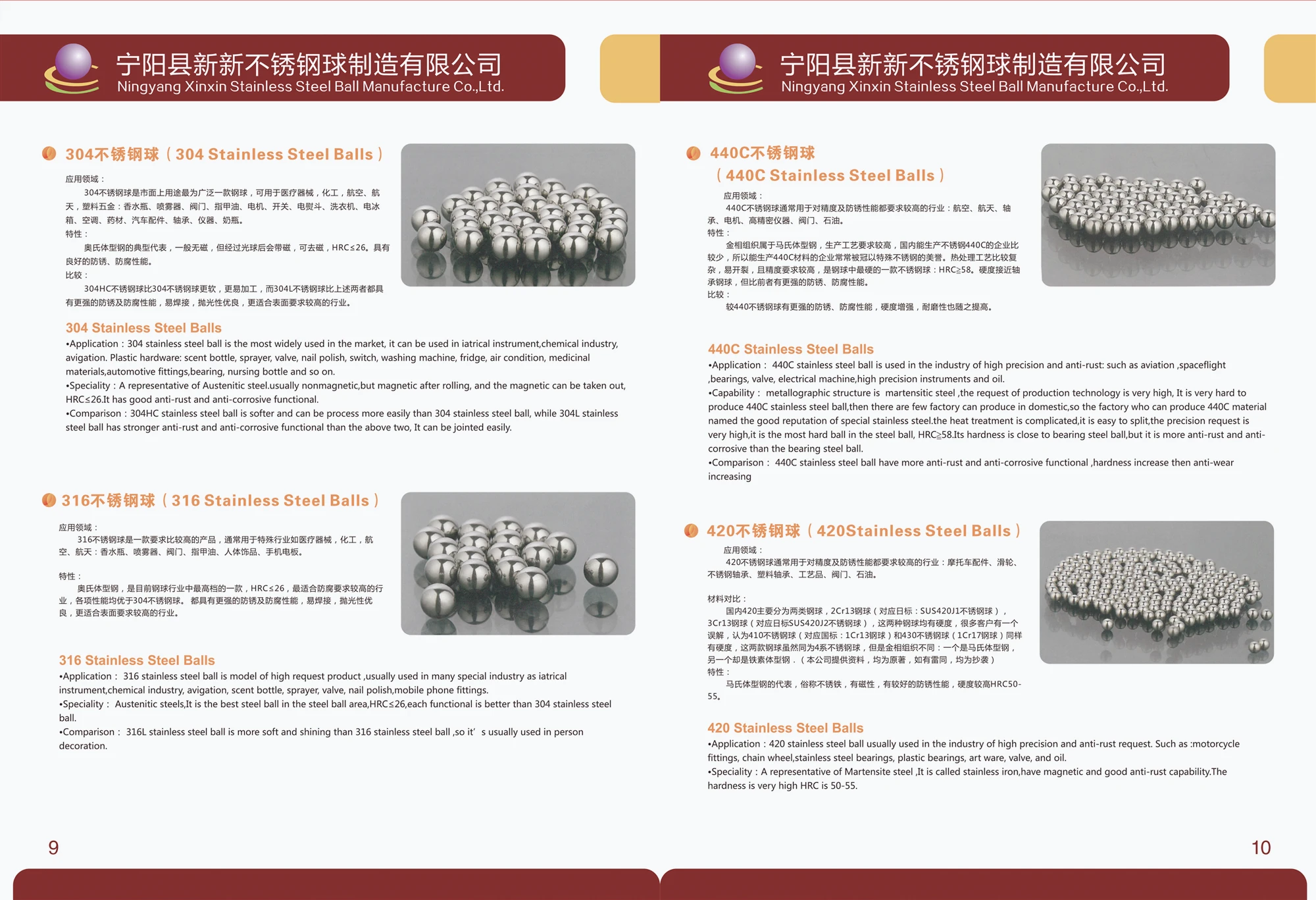 440C: Precision bearings, anti-friction bearings, special valves, conveyor belts and rollers, ballpoint pens. They are used in foodstuff, medical instruments, quick couplings, recirculating ball bearings, knotting devices, oil refinery devices.