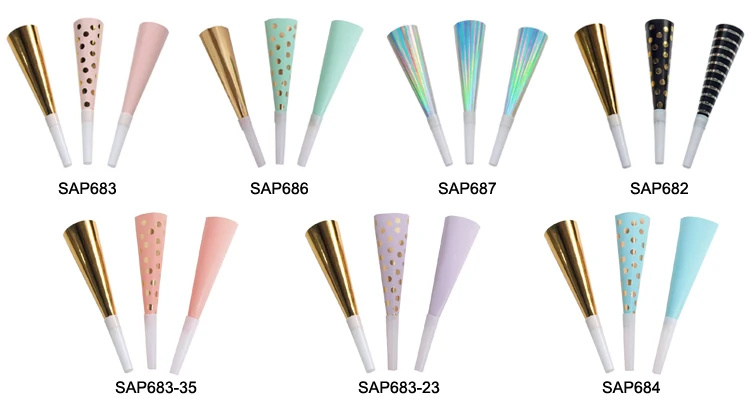 Colorful Party Paper Horn New Arrivals Design Perfect paper hat decorative for birthday party, disco, hollywood theme parties, baby shower, bridal shower, weddings and beach gathering. | |||||
