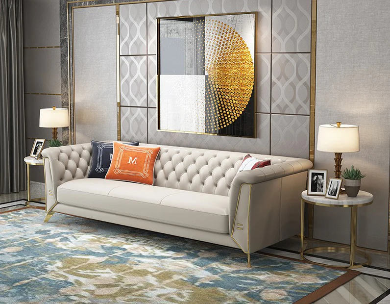 Leather sofas luxury legs and outer frame : Upgraded titanium-gold stainless steel legs