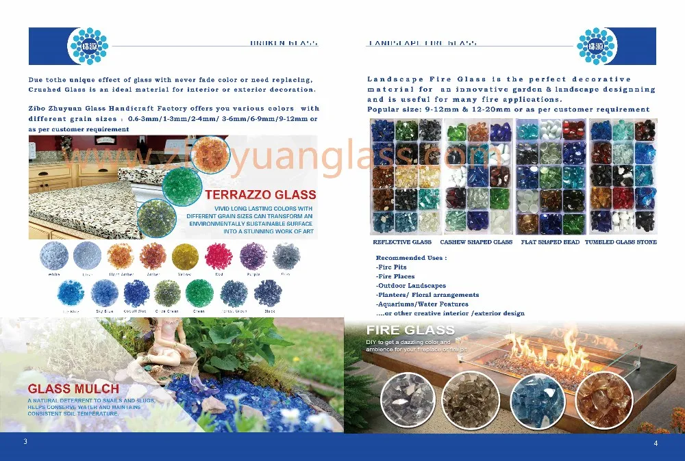Shandong Zhuyuan Glass Handicraft Co.,Ltd is located in Shandong Laiwu, has ten years production experience of glass products.With rich raw material resources and many years dedication on technology renovations, Shandong Zhuyuan Glass handicraft now is a pioneer manufacturer of colored glass beads, transparent glass beads, broken glass, glass sand, glass block, fireplace glass and other glass products. Our products have been exported to many countries and regions: North America, Europe, Asia, Australia, Taiwan and so on. With competitive price and timely and stable delivery, we have won praise from customers for the quality and excellent service.