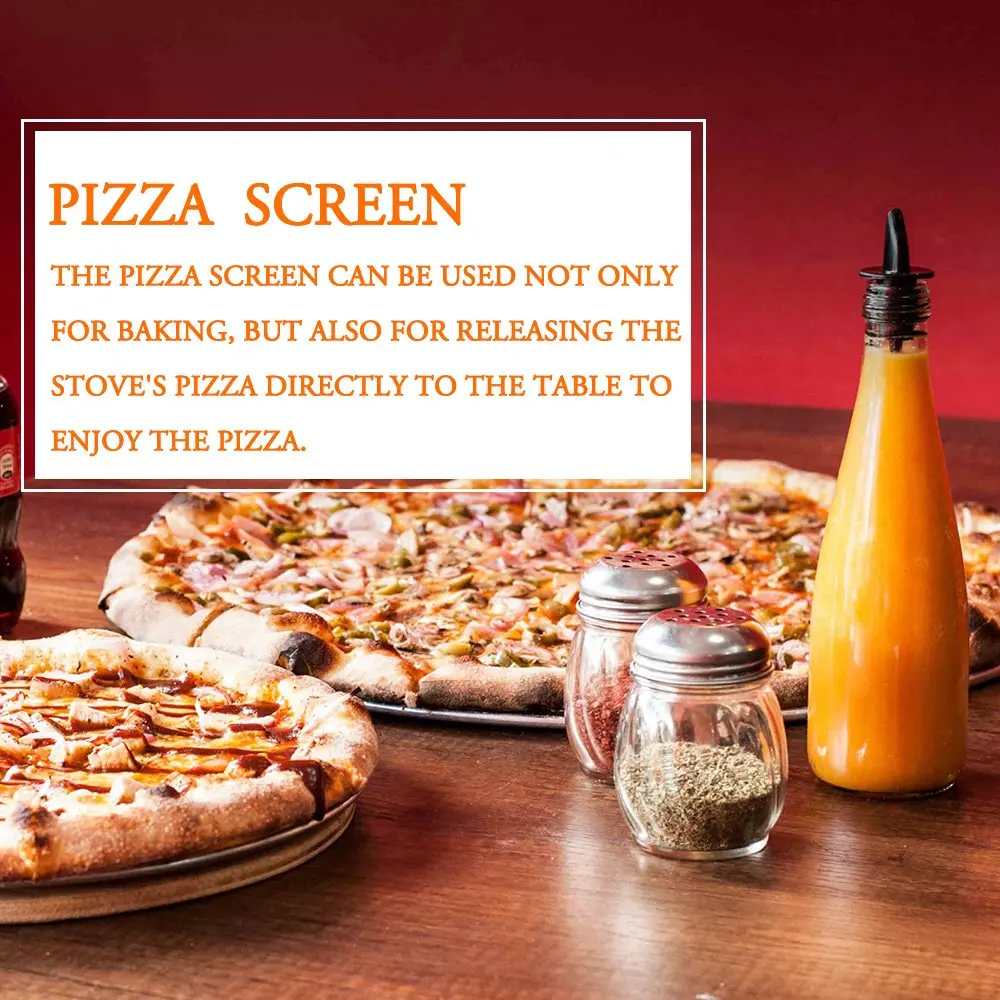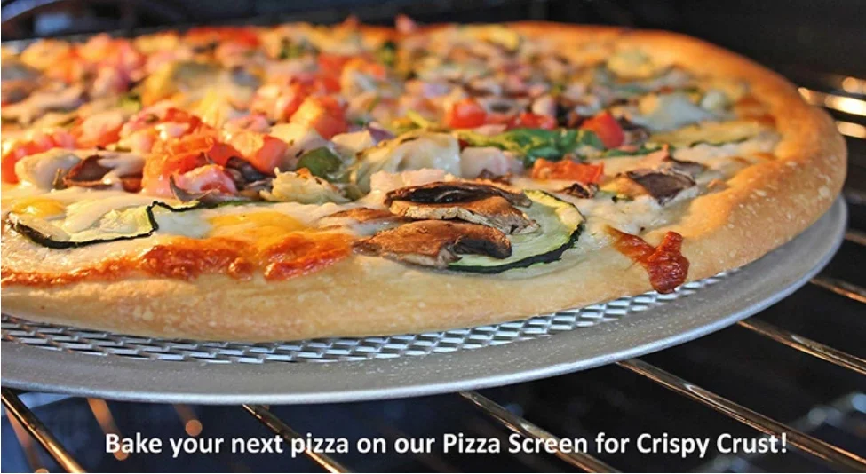 Pizza Screen have been designed to enable evenly baked pizza crusts, flat breads, Italian base pizza, thin crust pizza and other baked goods, this professional-quality aluminum pizza screen incorporates a seamless design to allow for more ventilation and allows air to circulate around the food.