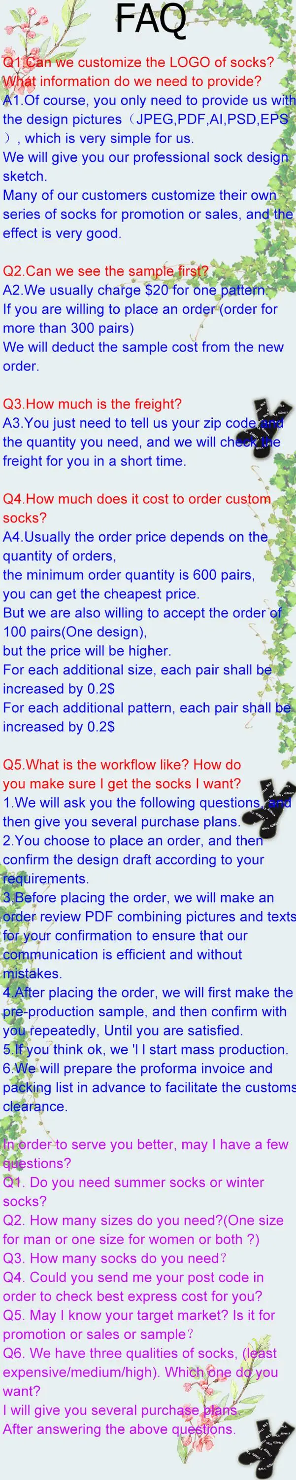 4. Independent design ability, we can help buyers to design socks together and develop the market.
