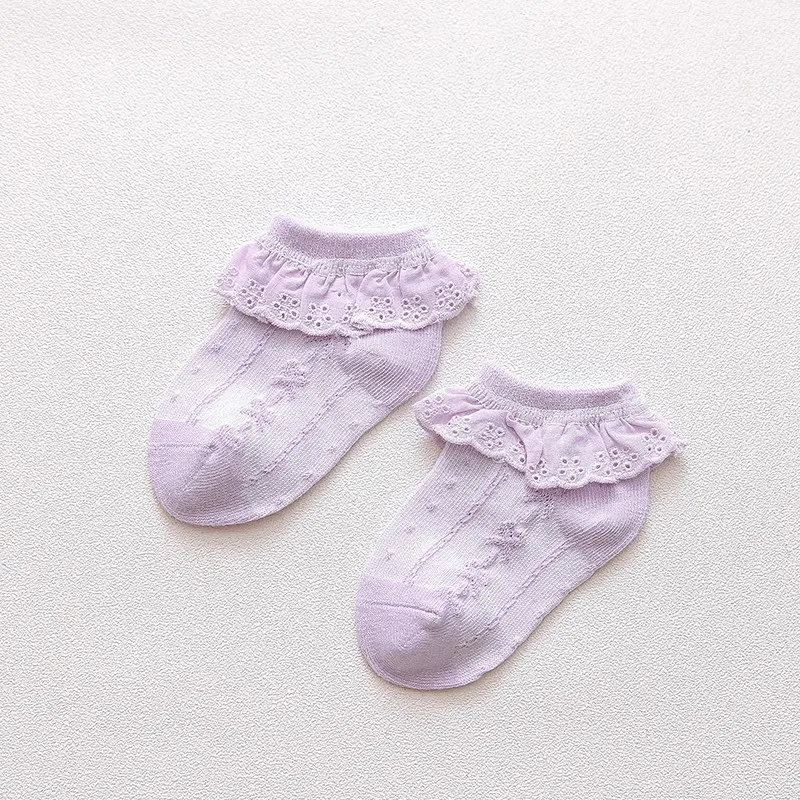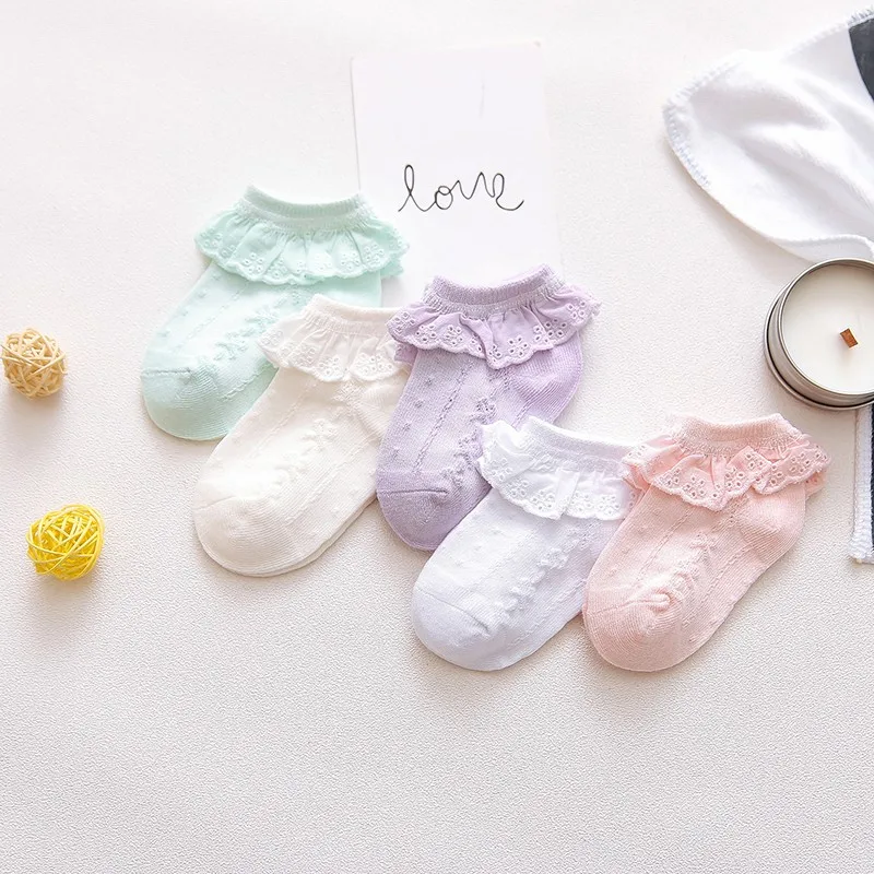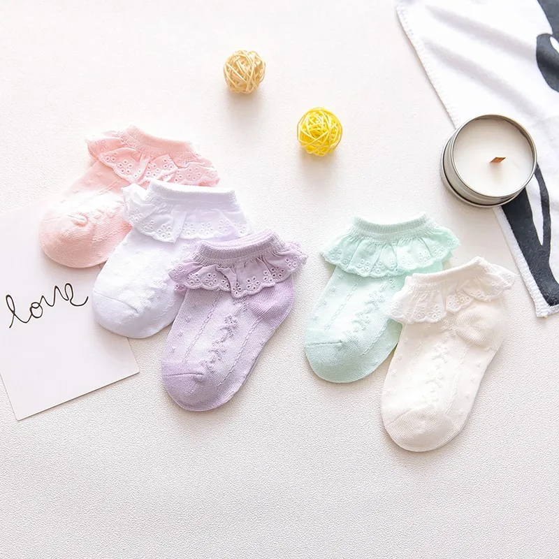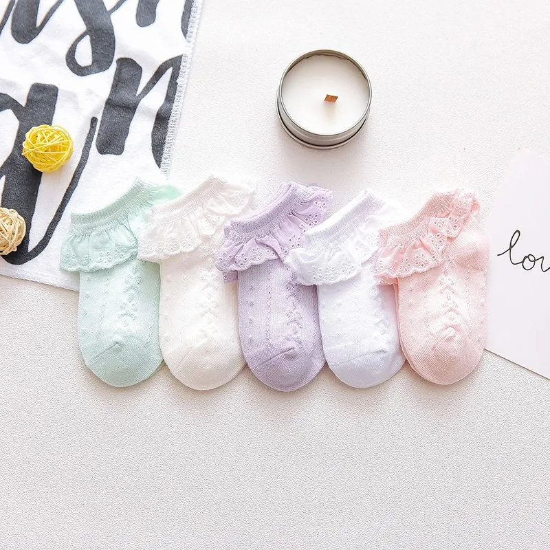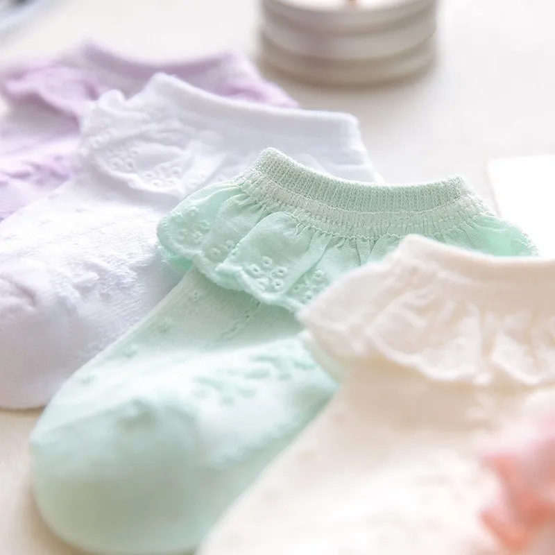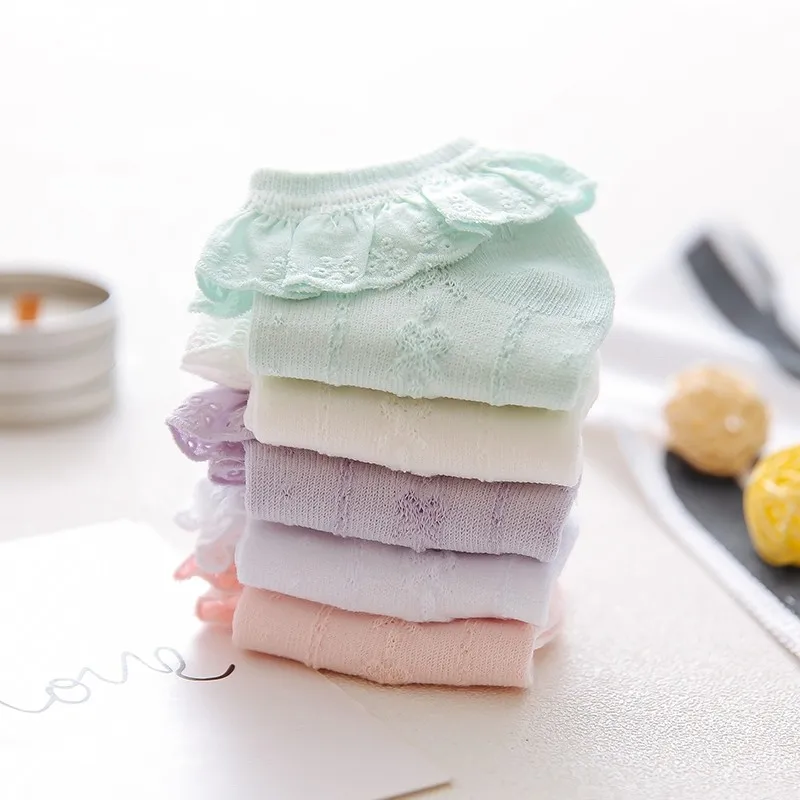 Новые летние хлопковые короткие носки карамельных цветов в стиле ретро с вышивкой кружевами и рюшами по щиколотку детские короткие носки принцессы для маленьких девочек