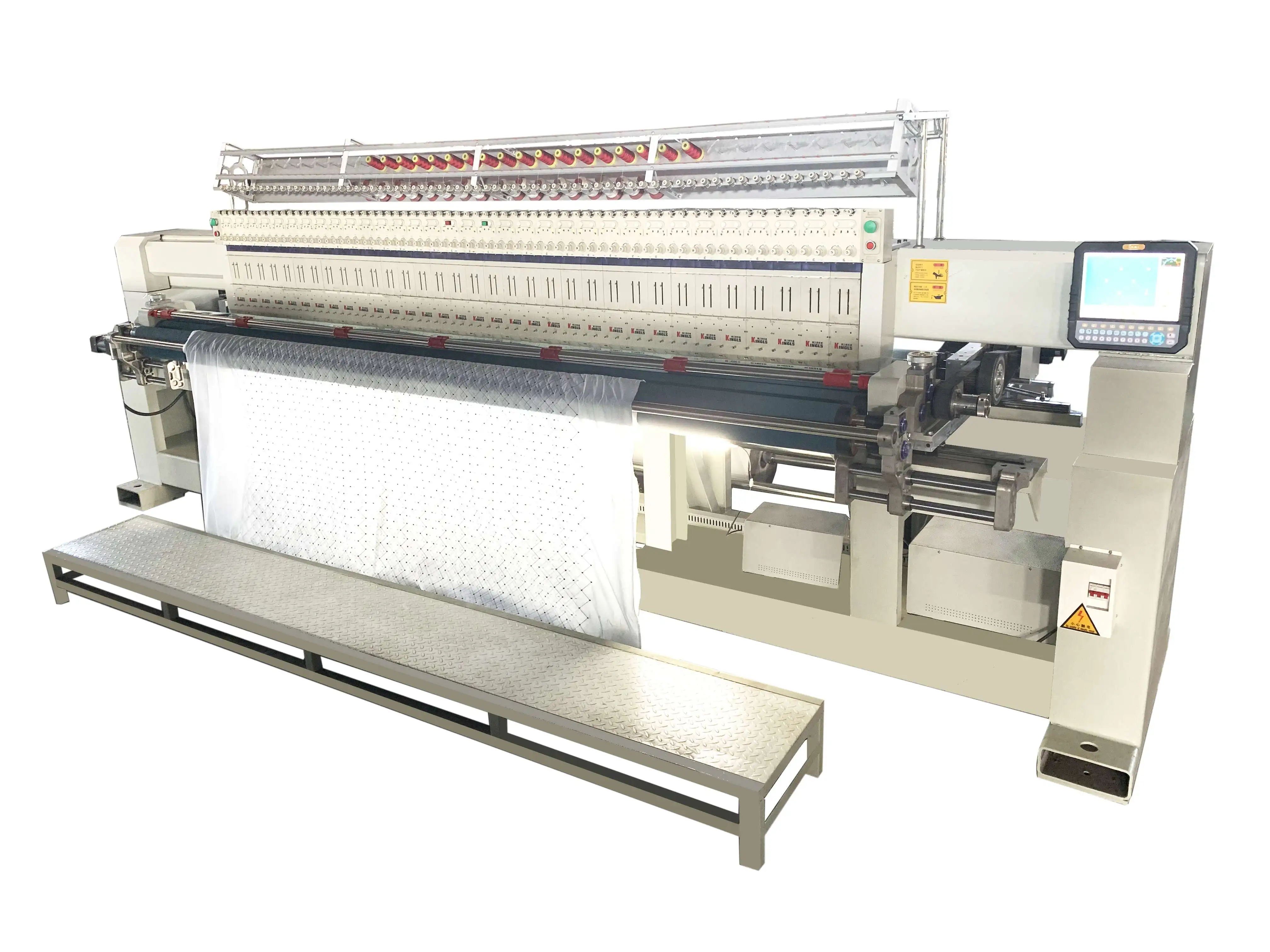 4)unlimited and contiuous quilting and embroidery in Y direction,front and rear automatic tensioning systems.