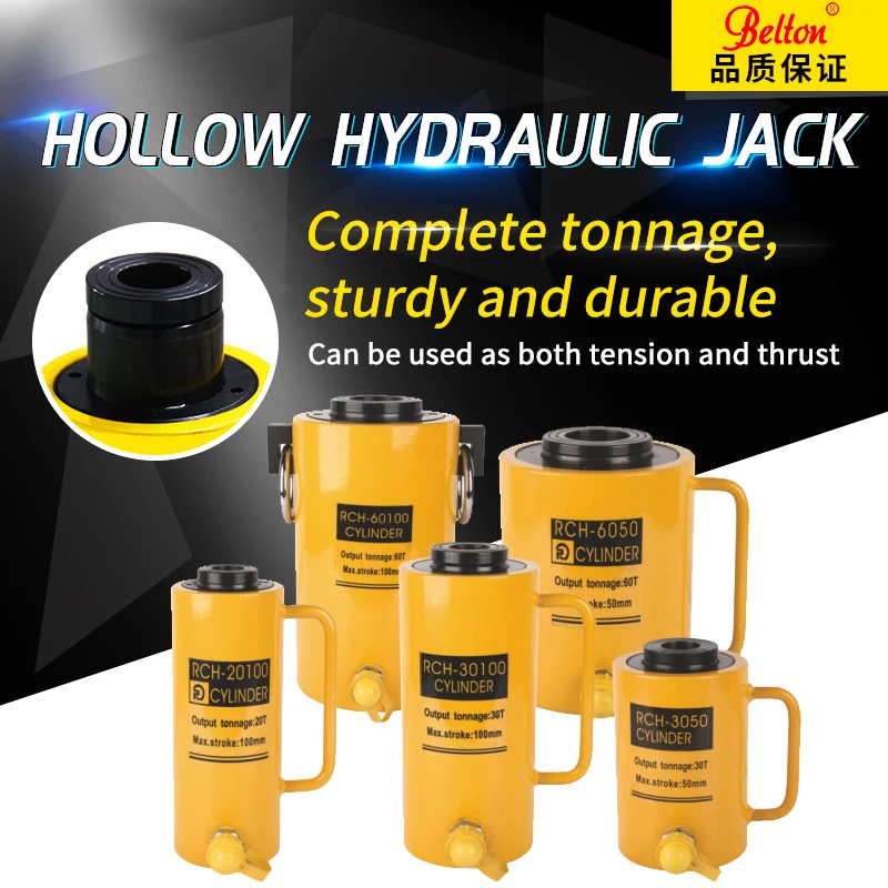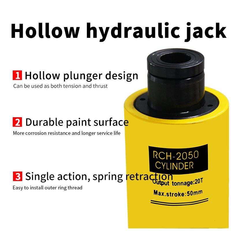 ODETOOLS RCH Series Single Acting Hollow Plunger Hydraulic Steel Jack 20T Hydraulic Hollow Jack