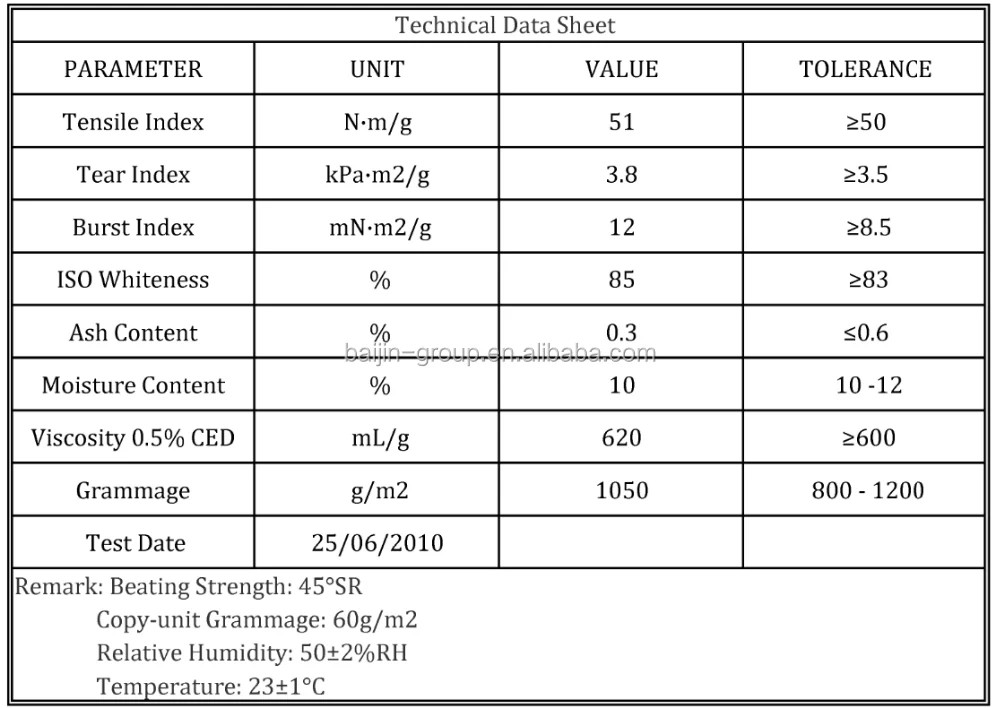 Green, eco-friendly TCF (totally chlorine-free) bleached bamboo sulfate bamboo pulp board.