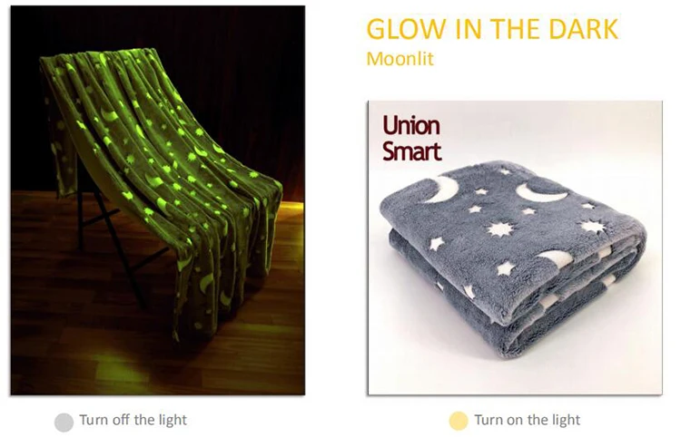 | Description: | Glow in the dark Fleece back side print blanket |
