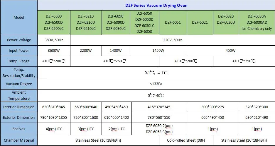 Specifications of lab vacuum drying oven: