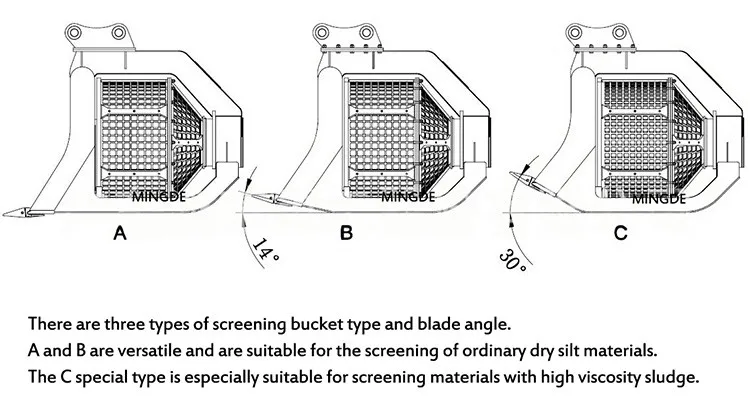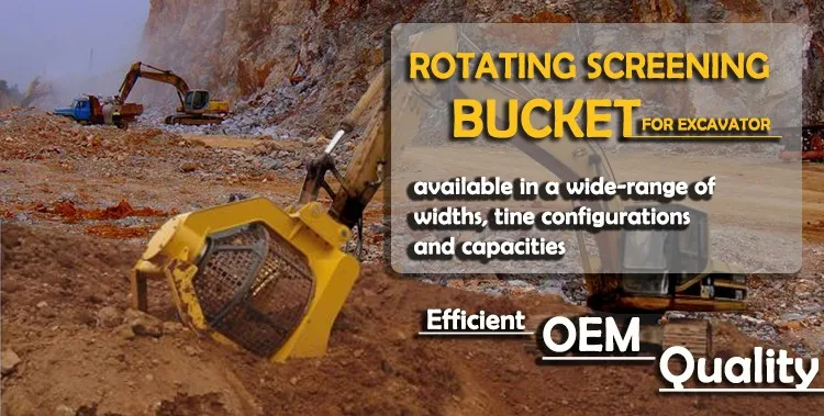 Preliminary screening of waste materials, demolition, excavation and re-filling, and soil rebuilding of rocky land. The screening bucket is suitable for sorting natural materials before and after comminution, reducing the comminution time by 60%, so that materials that are compatible with the type of processing required can be recycled and managed. With the inching hydraulic system, even wet materials can be screened, increasing production by 30% year-on-year. It is suitable for gravel screening and beach cleaning in waterways. It is a good assistant for screening fine debris blocks. The size of the sorting screen can be adjusted by changing the screen. Screen sizes from 10mm to 150mm are available. Can be made according to customer needs.