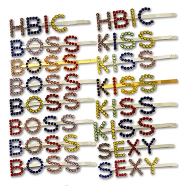 | Name: | HLH004 Trade Assurance New Design Fashion Letters Studded With Crystal Hairclips Simple Cute Girls Letter Female Hair Pin |