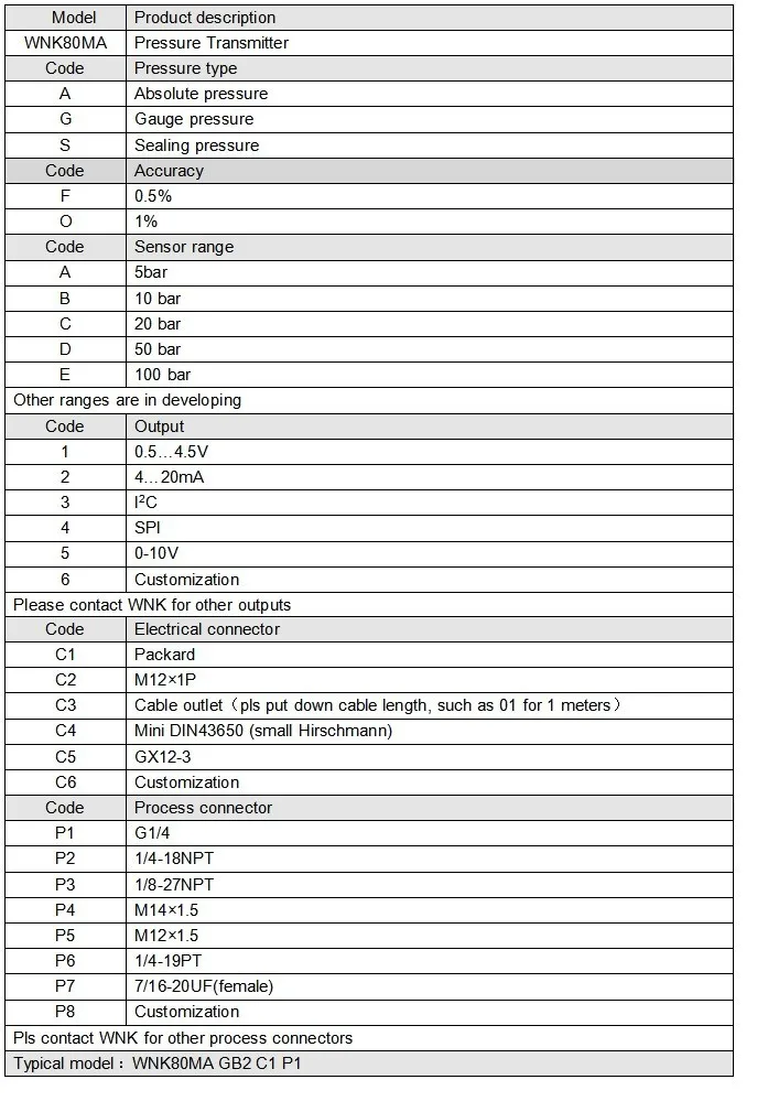 Pressure Type | Gauge,absolute,negative,vacuum |