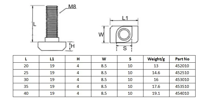 1D07.A4XA.01 Industrial aluminum profile accessories 10 slot steel grade 8.8 M8 connecting hammer bolt t head bolt US $0.12-$0.125