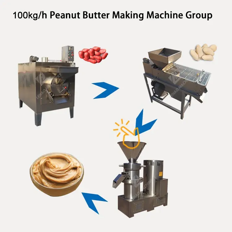 peanut butter making machine group | 100kg/h | Roaster, Peeling Machine And Peanut Butter Grinding Machine | 18㎡ |