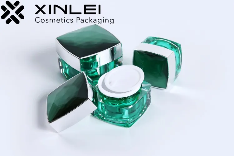 Wholesale cosmetic food packaging square dark green plastic jars with colored lids