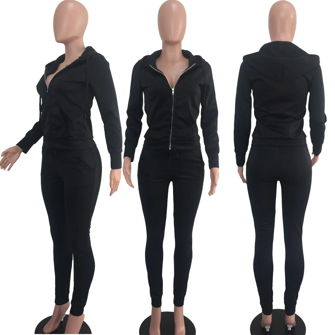 Однотонные женские костюмы для бега, оптовая продажа, комплект из 2 предметов, зимние женские джоггеры, комплект из двух предметов, спортивные костюмы