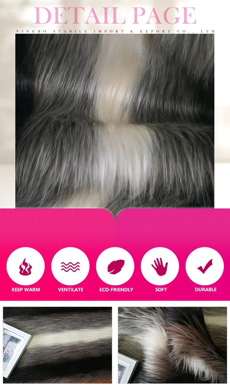 Оптовая продажа, индивидуальные полосы, 100% акриловая мягкая длинная ворсовая ткань из искусственного меха для одежды