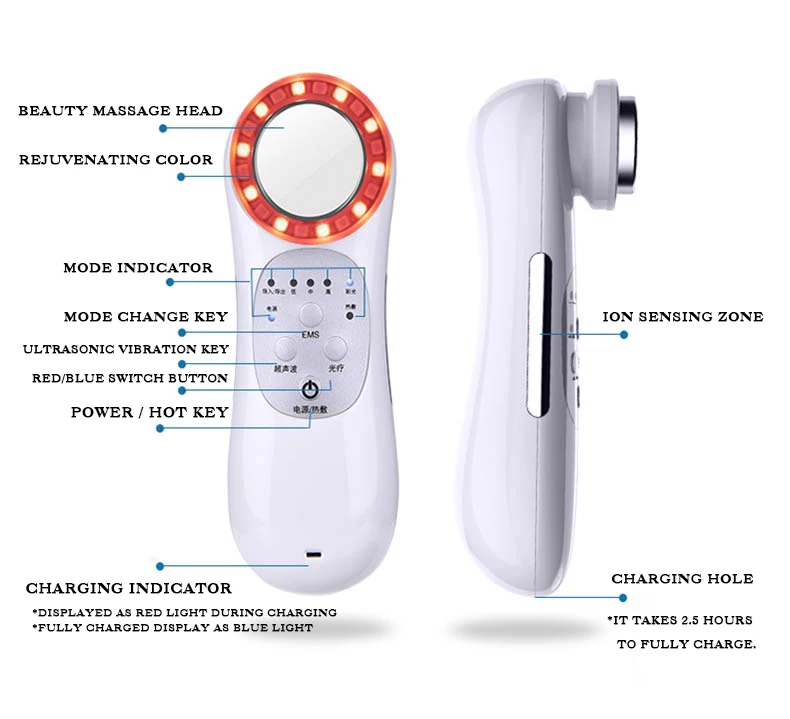 The instrument is a multi-function and comprehensive personal facial beauty instrument, which concentrates the popular beauty technology of various industries and integrates EMS RF current, heat, vibration, color light, ion micro current and other functions into one instrument. , scientific and efficient face introduction care effect when used. The instrument is not only powerful but also exquisitely designed, easy to operate and easy to carry, making it ideal for home facial skin care. The instrument was developed by several senior beauty electronics engineers to bring leading beauty technology and good skin care experience to the beauty of women.