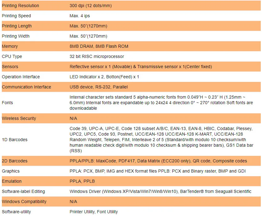 Sepcification:
