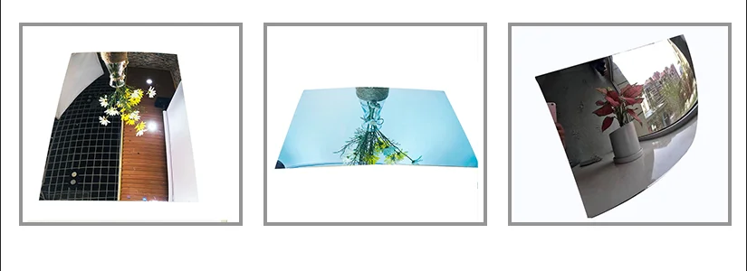 from the material we have three types convex mirror glass: aluminum convex mirror glass,chrome convex mirror glass and blue convex mirror glass.aluminum convex mirror is most popular convex mirror ,chrome mirror is also called anti-glare mirror,it can reduce the glare of strong sunlight and car light to the driver.so it is usually used for some high grade car ,sports bike or some high grade motorbike.