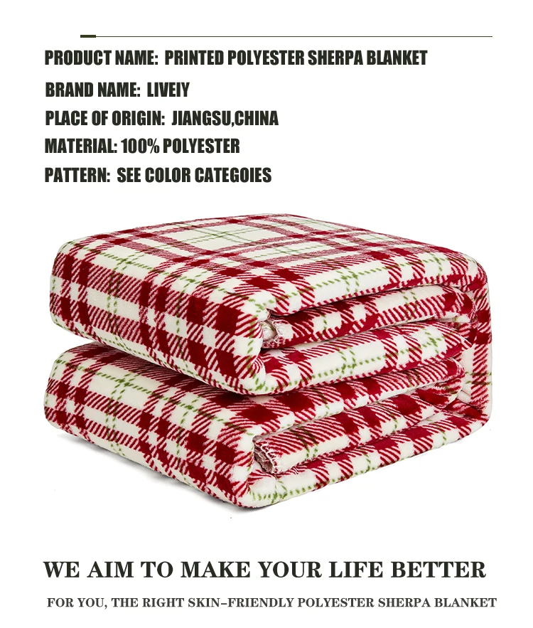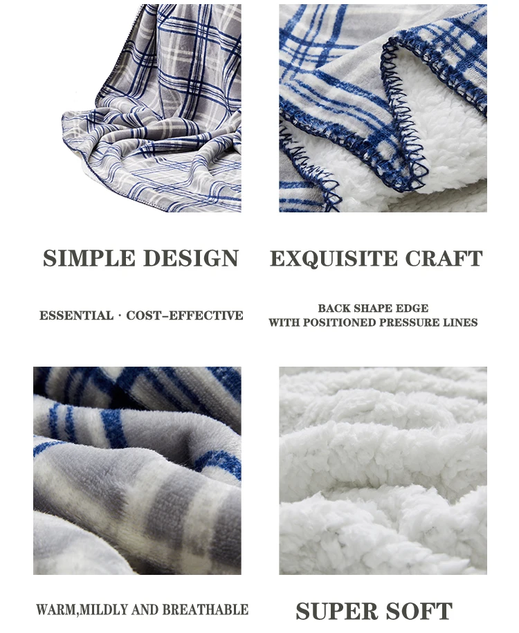 Merino Wool Blanket Plaid Fabrics Double Flannel Sherpa Queen Size Blanket For Winter