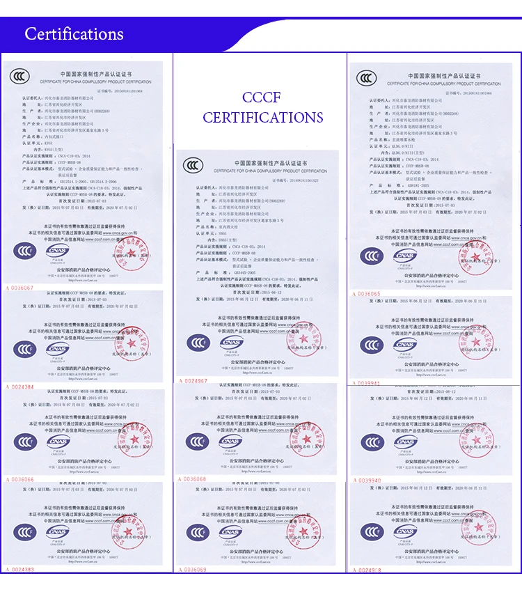 Dedicated to strict quality control and thoughtful customer service, our experienced staff are always available to discuss your requirements and ensure full customer satisfaction. In recent years, our company has introduced a series of advanced equipment. In addition, we have attained CCCF and ISO9001certificates. Selling well in all cities and provinces around China, our products are also exported to clients in countries and regions such as USA, Russia, Indonesia. We also welcome OEM and ODM orders.