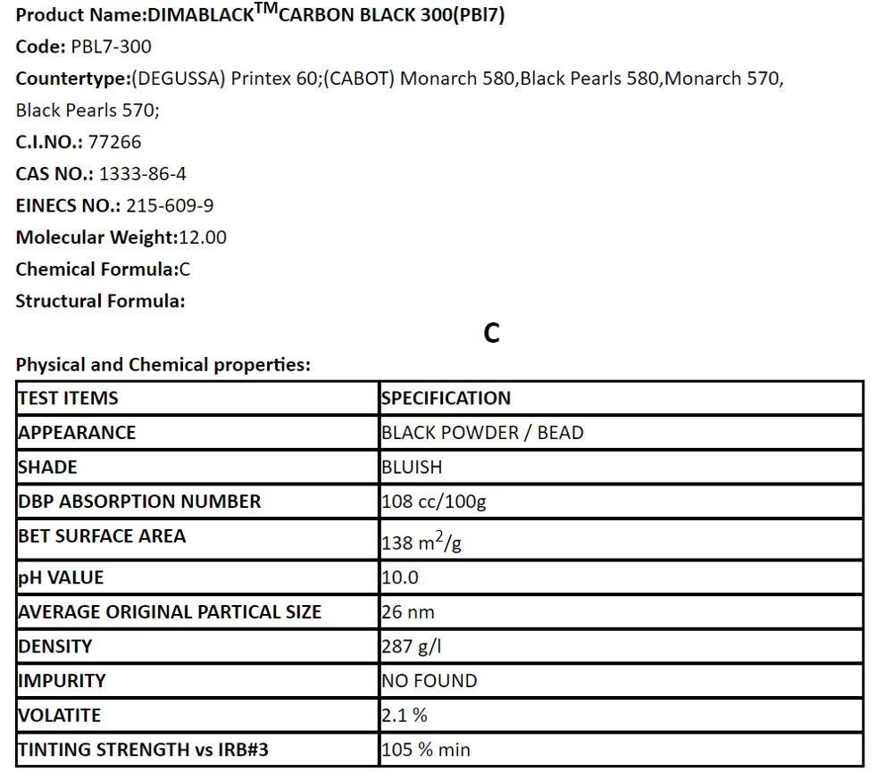 Carbon Black 300 (Pigment black 7) Printex 60
