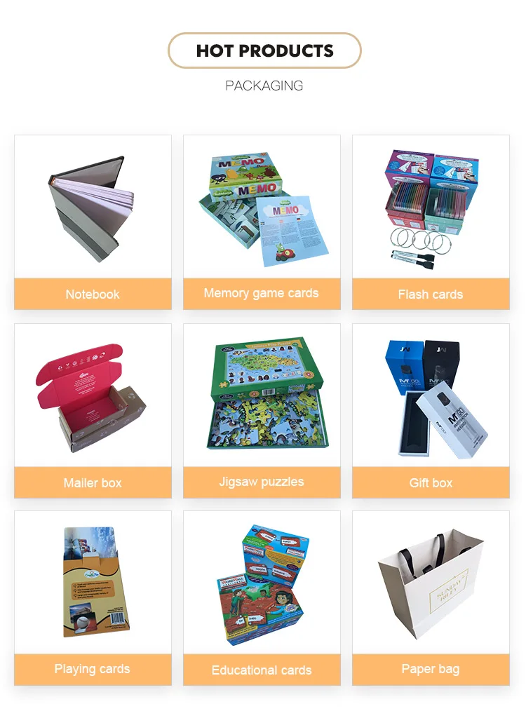 Finishing: matt/glossy lamiantion, UV caoting, emboss etc